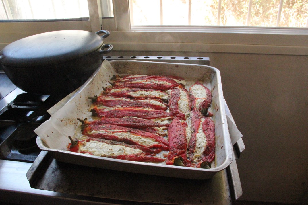 For your pleasure, the recipe for “Shoshka” peppers stuffed with feta