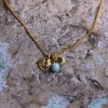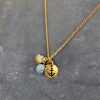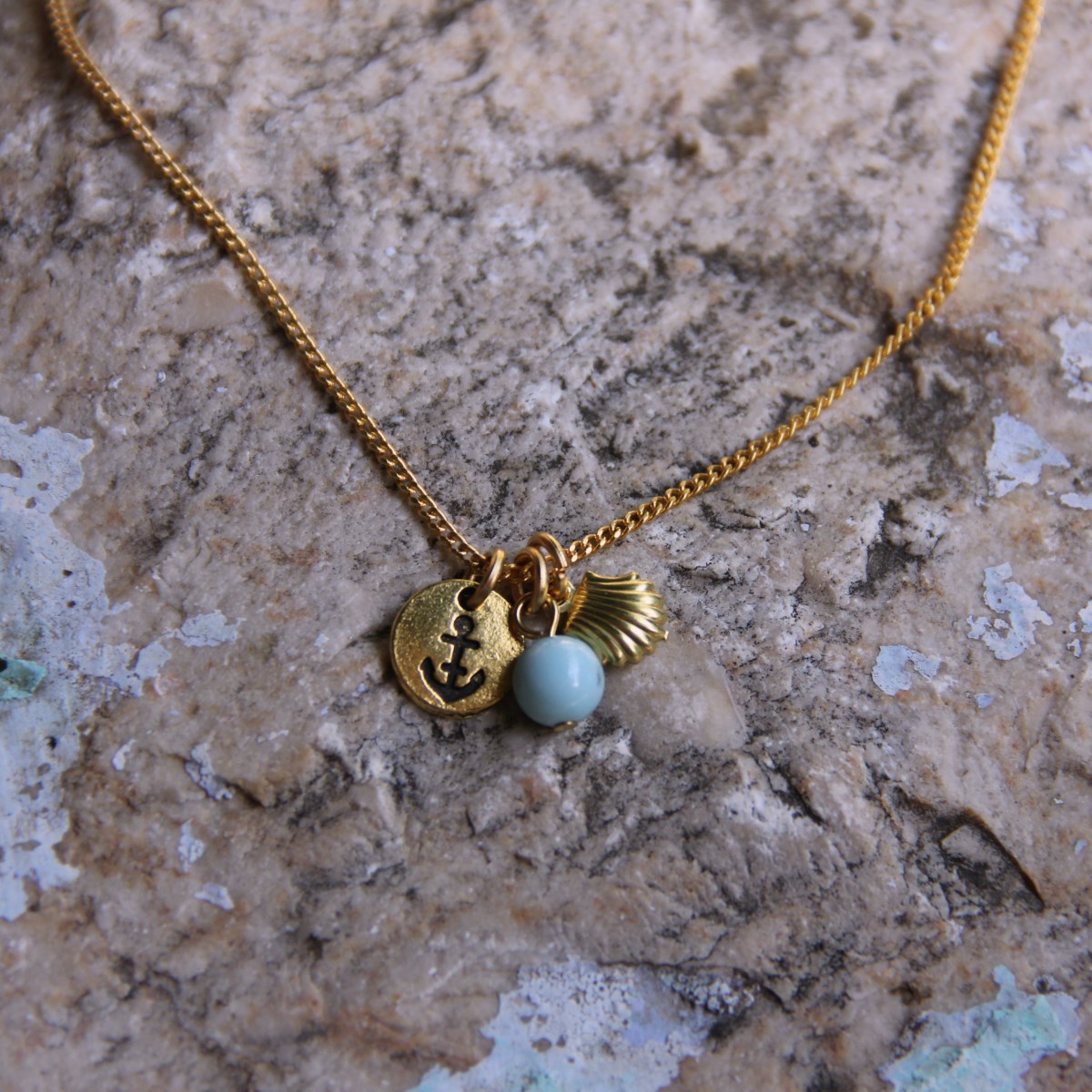שרשרת עדינה עם תליוני חרוז טורקיז, צדף קטן, ומטבע עם הטבעת עוגן