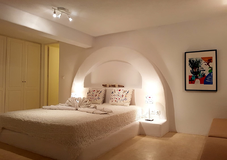 הדירה בנויה בסגנון קיקלאדי מסורתי ומעוצבת open space. בטוב טעם. בגודל 70 מטרים, בדירה: חדר שינה גדול מופרד חלקית, סלון רחב ידיים, חדר אמבטיה מפנק, מטבח מאובזר ופינת אוכל.
