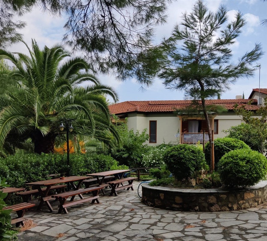 למקום שבחרנו קוראים villa karavitsi. מלון משפחתי קטן, ובו יש את כל מה שרצינו לחופשה שלנו – סביבה בטוחה מאד לחבורת ילדים נמרצים, מדשאה, גינה עם פינות מוצלות רבות, חוף צמוד עם ים רגוע ורדוד, מיטות ושמשיות שימושיות, מקלחת חיצונית, קפיטריה.