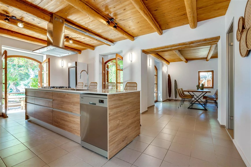 בארמוניה חדרי אירוח, מטבח מודרני ומאובזר, כולל כיריים גז, שני מקררים, תנור חשמלי ומדיח כלים, וחלל לאונג’ משותף עם פינות ישיבה נוחות ופינת אוכל.