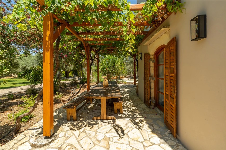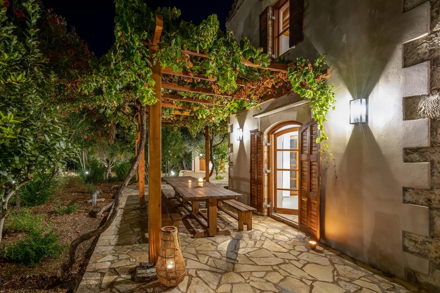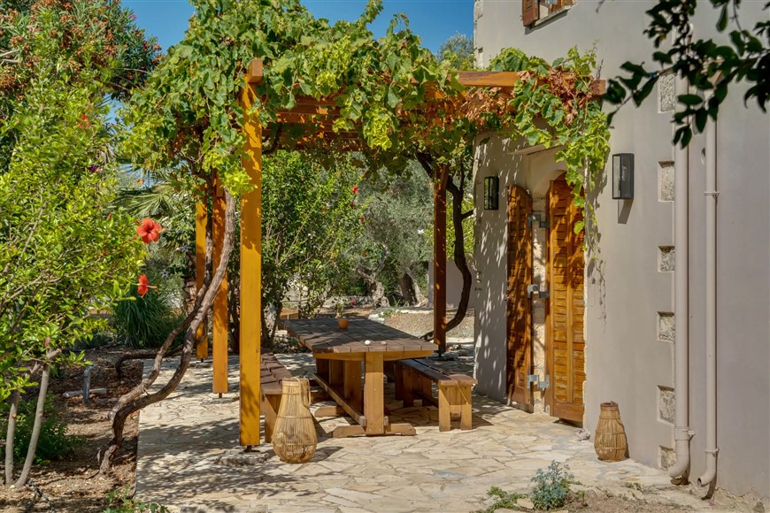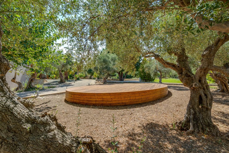 בשטחים החיצוניים תמצאו פינות ישיבה מוצלות, ערסלים ופינות התבודדות, משטח ריצוף דק עגול באמצע מטע זיתים עתיק, עליו ניתן לתרגל יוגה בבוקר או להינות ממנו מתצפית בכוכבים בלילה.