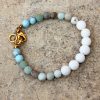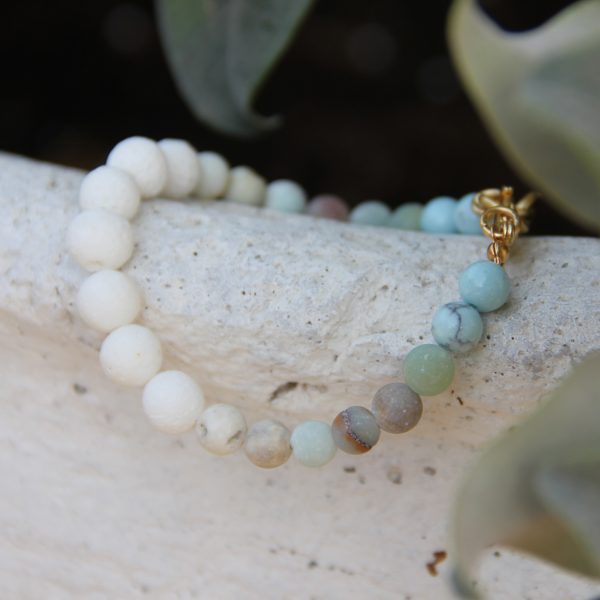 צמיד חרוזי לבה לבנה, חרוזי אמזונייט מתחלפים ותכלת מט.