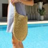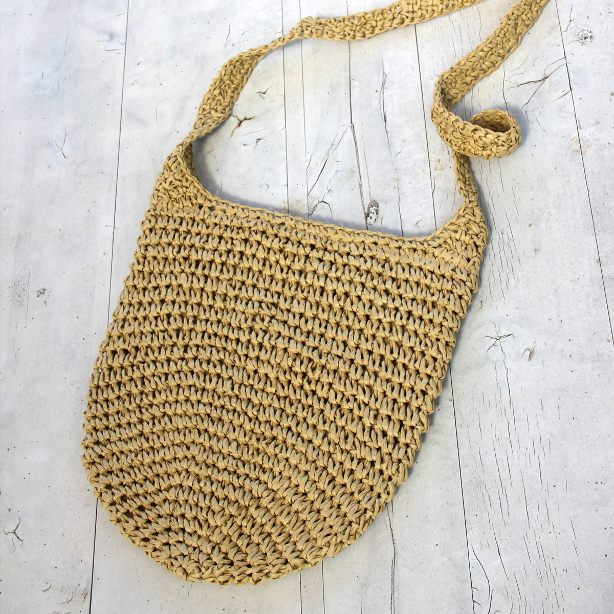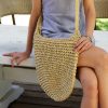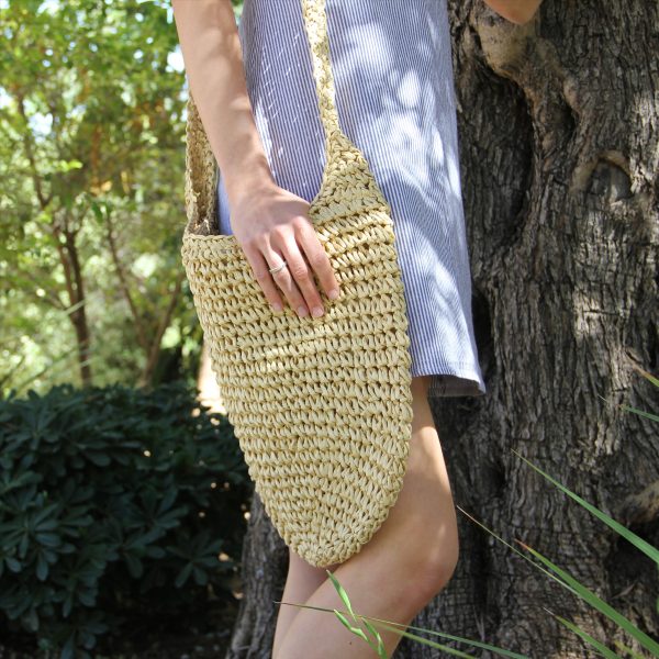 תיק קש אפנתי, בגוון טבעי, קל לנשיאה עם רצועה לנשיאה על הכתף או בהצלבה.